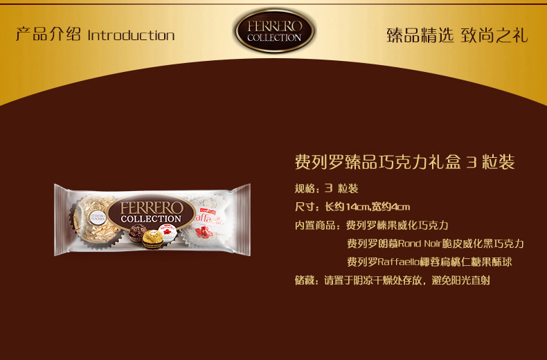 费列罗臻品巧克力糖果组合3粒装