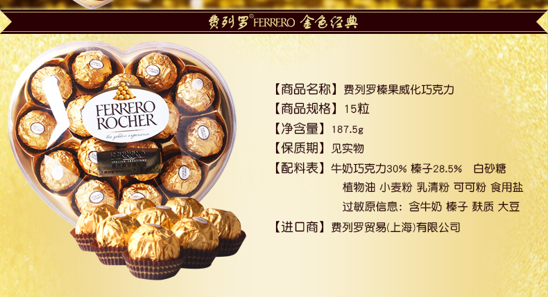 费列罗榛果威化巧克力T15心形装L