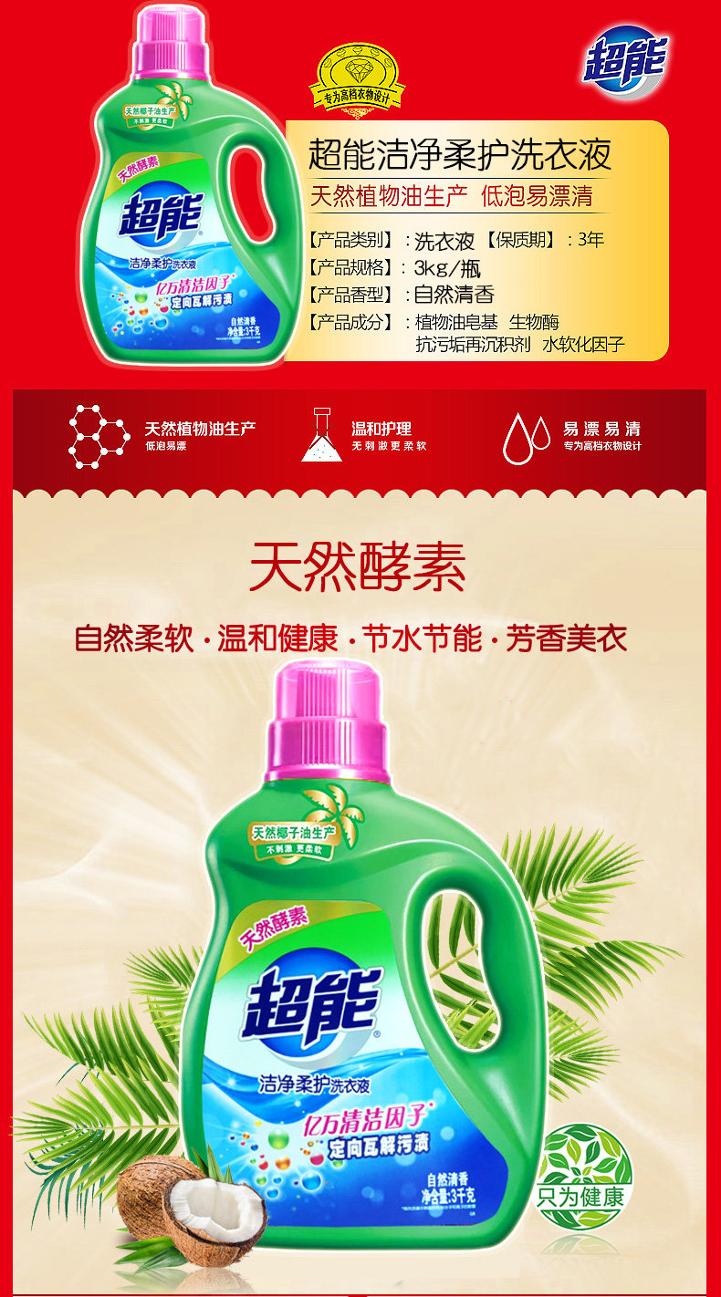 超能洁净柔护洗衣液(自然清香)