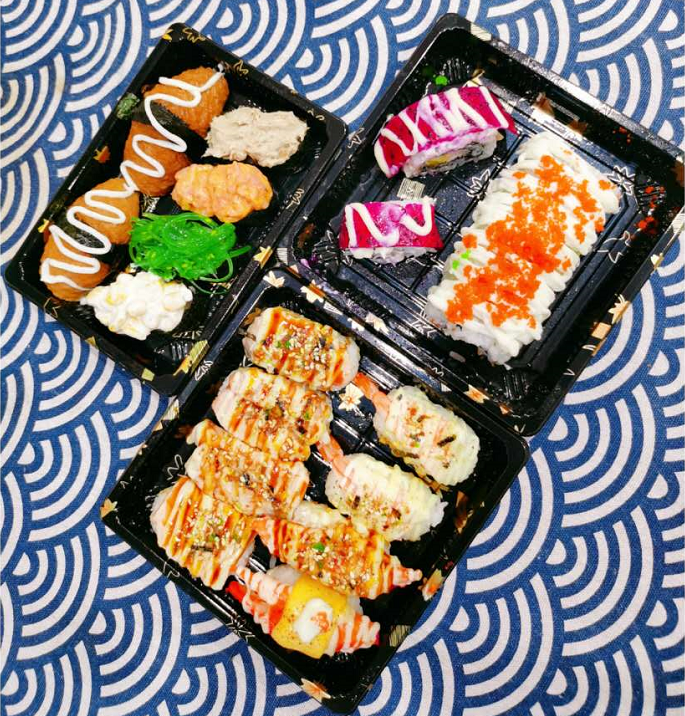 88套餐:酱烧三文鱼俩粒,日式豆皮握两粒,火炙虾两粒,酱烧虾两粒, 火炙芝士蟹柳两粒,加州卷4粒,火龙果两粒龙虾军舰一粒, 金枪鱼军舰一粒,沙拉军舰一粒,海草军舰一粒 到店自提再送鸭脯两粒,章鱼足两粒! 满58包邮 不️满58+7元运费 七期 满58+5元运费 不️满58+10元运费