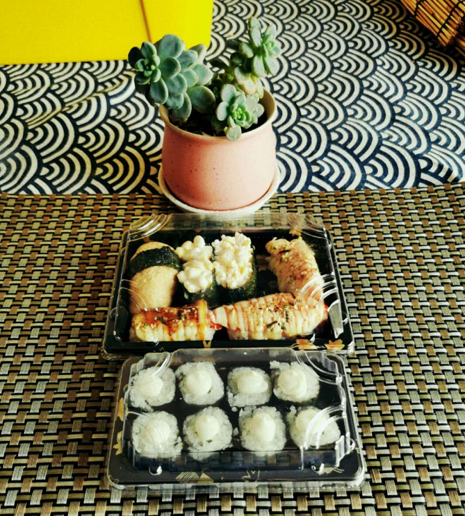 38套餐:玉米军舰一粒,沙拉军舰一粒,日式豆皮握一粒,