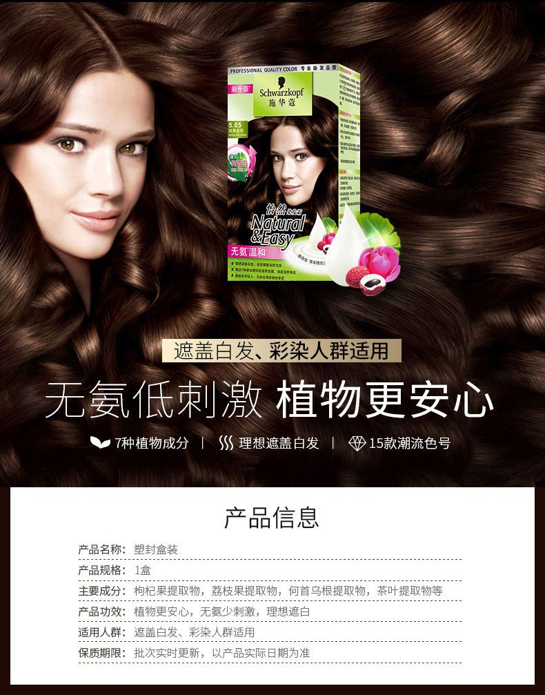 施华蔻怡然染发霜3.68/9木槿褐棕