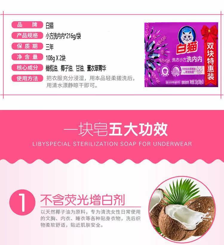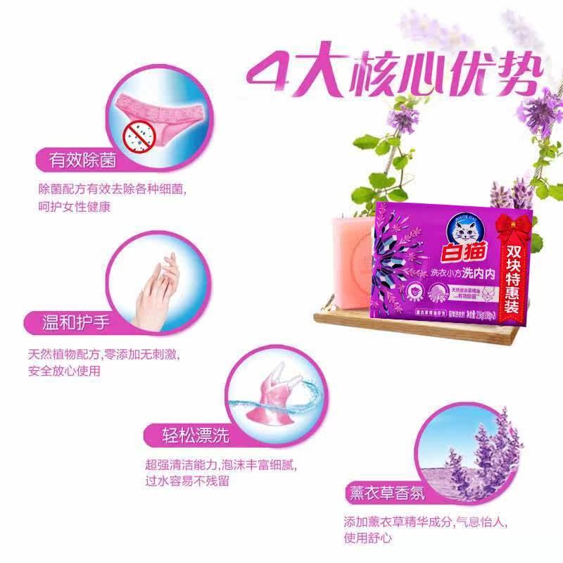 白猫洗内内洗衣小方皂双块特惠装(薰衣草精油芬芳)