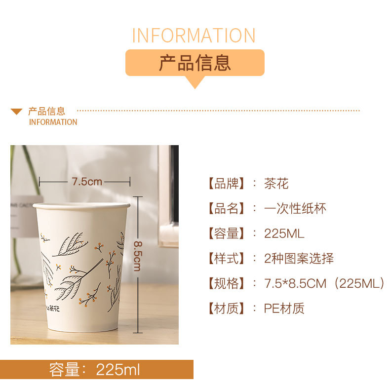 茶花3113P中号无蜡淋膜纸杯(促销装)